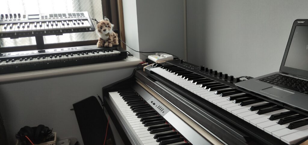 以前の構成は前回お見せした電子ピアノの上に KeyStage が乗ってる感じ